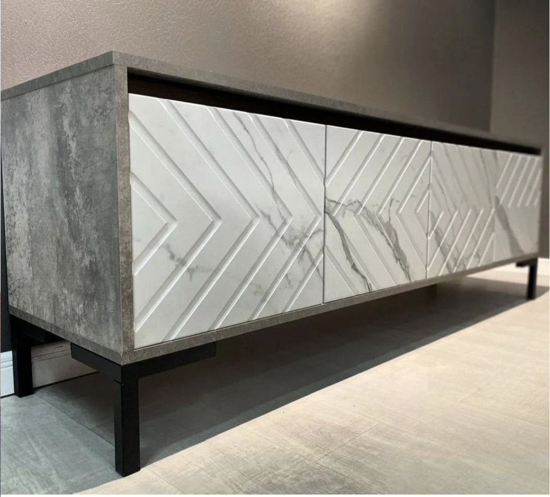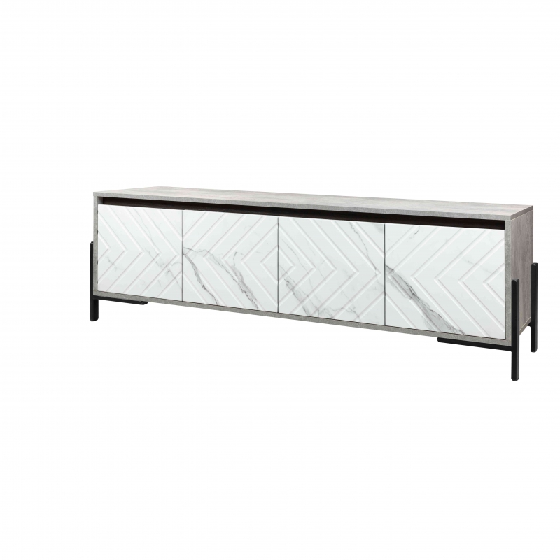 Тумба ТВ Аллиум-3 2 кат. (Айрон рок/Монте белый/Вставка венге/Черный)